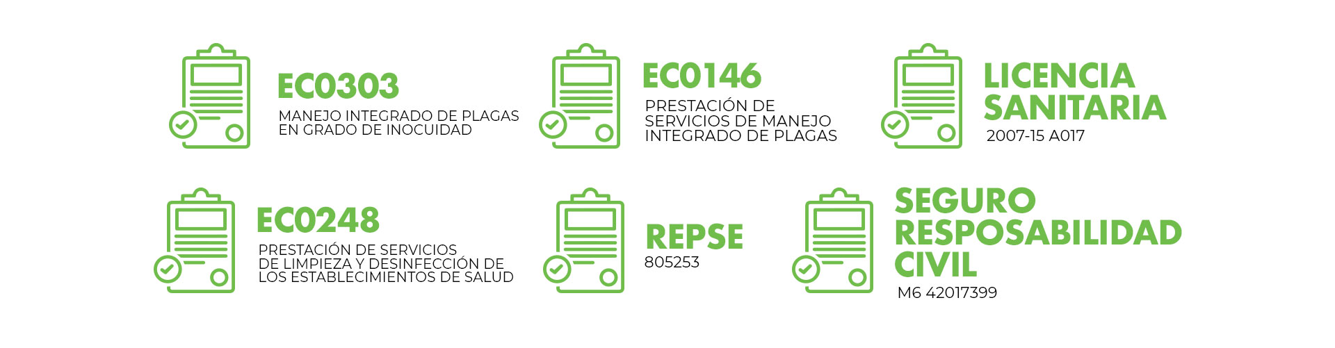 Nuestros servicios están respaldados por certificaciones oficiales, licencias sanitarias y registros, cumpliendo con todas las normas del gobierno en control de plagas y desinfección.